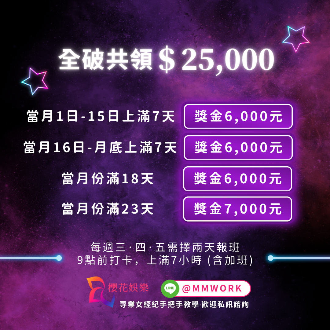 櫻花經紀│櫻花娛樂經紀團隊是業界最專業的公司,門禁問題是所有問題裡面最小的問題,只要妹妹們有上班的慾望,我們會幫妳處理好上班時段,並符合妳的門禁需求。